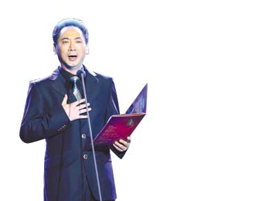 晚會由著名表演藝術家瞿弦和與武警文工團合唱團分別獻上不同版本的《周總理,你在哪里》,奏響開篇大幕。74歲高齡的殷之光再度攜手著名鋼琴家劉詩昆,獻上配樂詩朗誦《周總理辦公室的燈光》,而周恩來扮演者劉勁(右圖)與鄧穎超扮演者黃薇這對老搭檔繼電視連續(xù)劇《周總理在重慶》后再次合作,為觀眾送上周總理與鄧穎超的通信錄對白節(jié)選《從西花廳海棠憶起》。動情處兩人潸然淚下,下臺前,兩人對著背景板上的周恩來夫婦深鞠一躬,場面十分感人。歌唱家丁毅的《你是這樣的人》將晚會推向高潮。記者張學軍 記者 蘇冠名/攝