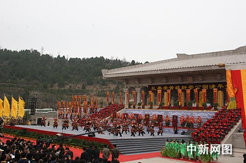 全國人大常委會副委員長華建敏、全國政協(xié)副主席張榕明、澳門特首何厚鏵等高級官員出席了今天的公祭軒轅黃帝典禮。陜西省省長袁純清恭讀了祭文。來自中央二十幾個部委,中國三十一個省直轄市、自治區(qū),港澳臺及海外代表共計八千余人參加了祭祀儀式。《黃帝祭祀大典圖志》也在儀式上舉行了首發(fā)式。