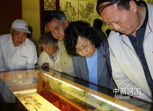 記者在現(xiàn)場看到,張大千作品剛一展出就吸引了大量書畫愛好者前來參觀!拔覐1956年開始喜歡并臨摹大千先生的作品,已經(jīng)五十多年了,今天能夠在這里欣賞到這么多大師的真跡,真的感到特別高興!痹谡褂[現(xiàn)場,一位80多歲的老婆婆駐足在作品前,高興地對(duì)記者說。