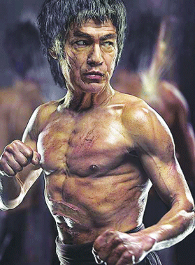1940年出生的香港功夫片明星李小龍,于1973年在片場意外去世,如果他活到現(xiàn)在,將有68歲。雖然他的軀干依然肌肉發(fā)達(dá),但卻布滿了傷痕,而他那張本來年輕的面龐,現(xiàn)在卻布滿了皺紋,頭發(fā)也變得灰白。不過他的拳腳功夫顯然仍屬一流,當(dāng)他在鏡頭前擺出揮拳的姿勢,無論動(dòng)作和眼神都仍和年輕時(shí)一樣凌厲。