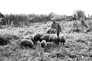 1986年圓明園北遠山村住戶在放羊。