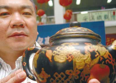 在當(dāng)天沈陽茶城主辦的紫砂名壺拍賣會上,一把乾隆年間宮內(nèi)御用的“宜興窯紫砂黑漆描金吉慶有余壺”以155萬元的天價拍賣成功,這個成交價格也打破了此前香港佳士得拍賣行拍賣一件清乾隆剔紅饕餮夔龍紋紫砂壺時147.7萬港元的歷史最高價紀(jì)錄。