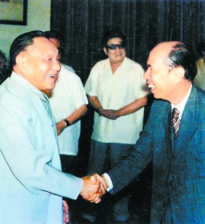 “我在上世紀(jì)50年代多次赴京參加國(guó)慶觀禮,與鄧小平見過面,但沒有機(jī)會(huì)交談。正式和鄧小平見面并談話是在1978年4月30日,那是‘五一’國(guó)際勞動(dòng)節(jié)前夕,鄧小平以國(guó)務(wù)院副總理的身份接待港澳同胞和海外華人華僑代表,在人民大會(huì)堂幾千人的晚宴上,我有幸被安排坐在鄧小平的旁邊。同桌的還有葉帥!