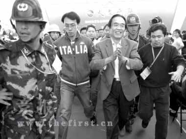 講座全部結(jié)束時,為使閻崇年能穿過人群順利到達(dá)方澤壇北門的休息室,約有十幾名安保人員為其開道,幾乎是“架”著閻崇年離開會場,不時有熱情的讀者欲遞過書簽名,但是卻完全不能接近。