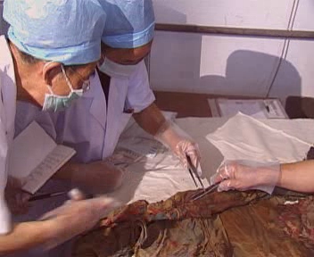 隨后,研究人員對(duì)光緒帝的隨葬衣物進(jìn)行了砷的分布的檢驗(yàn)。光緒帝的送檢衣物共有五件,其中四件上衣(或外衣),一條褲子。由于年代已久,五件衣物除龍袍保存狀態(tài)尚為良好外,其余三件內(nèi)衣均已嚴(yán)重腐爛。根據(jù)尸體腐敗對(duì)穿著衣物侵蝕由內(nèi)向外會(huì)逐步減輕的一般規(guī)律,研究人員依次推定出四件上衣由內(nèi)到外的穿著順序。隨后依照物質(zhì)吸附和信息轉(zhuǎn)換還原原理,對(duì)接近光緒帝尸體特殊部位的衣物分別取樣,進(jìn)行了砷的分布的檢驗(yàn)。