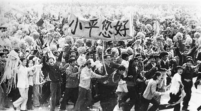 過了幾天,據(jù)說有新華社記者來北大生物系采訪我們,老師一時很緊張,后來記者對他們說這是一件好事。那時信息不像現(xiàn)在這么快,后來才得知10月2日人民日報第二版刊登了我們舉著“小平您好”橫幅的照片,是人民日報攝影記者王東老師拍攝的。至此,我們心里才踏實下來。
