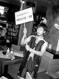 座談會進行了一個小時左右,還算順利,但接下來的簽售環(huán)節(jié)卻出現了一個小插曲,“大概簽了有十多分鐘時,我聽到場上有人在笑,原來是有人在我身后舉著‘反對炒作!開除無良文人張一一省籍’的牌子以示抗議,但這并未影響我的心情!睆堃灰徽f。