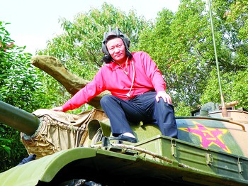 戴上坦克帽,登上坦克車,許光達侄女婿楊坤明心潮澎湃。余志雄 攝