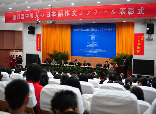為紀(jì)念中日和平友好條約締結(jié)30周年和中國(guó)改革開(kāi)放30周年,作為2008日中青少年交流年認(rèn)定事業(yè)之一,由日本僑報(bào)社日中交流研究所主辦,日本駐華大使館、人民日?qǐng)?bào)社人民網(wǎng)等支持,日本財(cái)團(tuán)特別贊助的“第四屆中國(guó)人日語(yǔ)征文大賽”,于今年3月拉開(kāi)帷幕,首次分設(shè)論文部門(mén)和紀(jì)實(shí)部門(mén),同時(shí)首次設(shè)立日本大使獎(jiǎng)。主題分別為“如何構(gòu)筑中日雙贏關(guān)系”、“我所知道的日本人”。