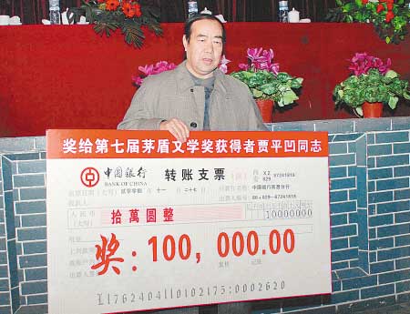 賈平凹獲得10萬(wàn)元獎(jiǎng)金。 記者 尚洪濤 攝