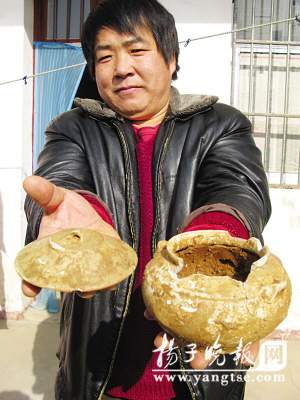 在發(fā)掘中,考古人員發(fā)現(xiàn)了4個(gè)盜洞?脊湃藛T向記者描述,這4個(gè)盜洞中,其中有兩個(gè)在墓道上方,由于下面有著25層填土石,最長(zhǎng)的達(dá)10米,估計(jì)盜墓賊無(wú)從下手,只好放棄了。而后方的墓室頂部就沒(méi)能幸免,盜墓賊從墓室頂部又打了兩個(gè)盜洞,這里是土層封頂,為盜墓賊提供了方便。在盜洞里,考古人員發(fā)現(xiàn)盜墓賊留下的瓷片,“從瓷片來(lái)判斷,是宋代的。瓷片型制表明是生活用品,可能是盜墓賊當(dāng)年使用的油燈!彪y道是一座宋代古墓?不可能。考古人員憑經(jīng)驗(yàn)認(rèn)為,下面一定葬有更早期的墓葬。隨著盜洞周?chē)奶酵诓粩噙M(jìn)展,考古人員發(fā)現(xiàn),古墓中不斷出現(xiàn)散落的青磚,這是為什么?難道古墓完全被盜過(guò)了?挖掘到底部時(shí),令考古人員十分痛惜,這處古墓葬的墓室部分遭到嚴(yán)重破損,墓壁四周的青磚基本被推倒,只留下了不到20厘米高的幾層墓壁,沒(méi)有發(fā)現(xiàn)棺釘和大量文物。專(zhuān)家分析,可能是該墓室被遷移,而非盜墓者所為。