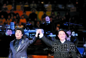 昨晚,郎朗2009北京新年音樂會(huì)在國家體育館舉行,這是奧運(yùn)場(chǎng)館第一次向一位古典音樂家開放,而對(duì)于大多數(shù)北京觀眾來說,到體育館欣賞音樂會(huì)也是一次新鮮的體驗(yàn),不過昨晚的演出氣氛多少有點(diǎn)別扭,郎朗和北京交響樂團(tuán)的演奏是高質(zhì)量的,但體育館的環(huán)境卻很難讓人靜下心來。