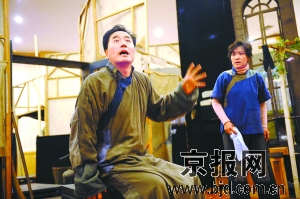昨天雖然看到的只是該劇第一場(chǎng),但也能從中感受到《龍須溝》的整體風(fēng)格。散文化的敘事方式,使該劇的故事性比較弱,但人物個(gè)性鮮明,它所展現(xiàn)的市井生活具有濃郁的生活氣息。動(dòng)蕩的大環(huán)境下,小人物的悲慘命運(yùn)在家長(zhǎng)里短的敘述中逐一呈現(xiàn),很快就將觀眾帶入規(guī)定情境。雖然只是連排,但看到辛酸處,還是讓不少人都感覺眼眶一熱。人藝藝委會(huì)成員蘇民、鄭榕、朱旭、藍(lán)天野等老藝術(shù)家也前來(lái)觀看。藍(lán)天野說(shuō),盡管自己50多年前看過(guò)老版《龍須溝》,但這次依然被感動(dòng)得三次落淚。
