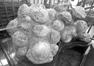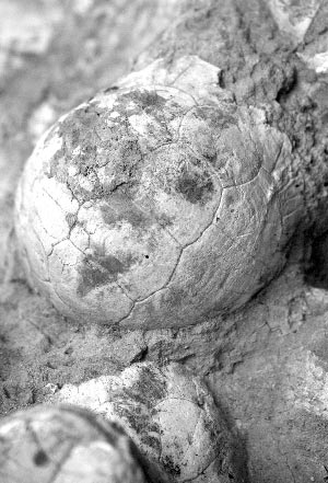 恐龍蛋化石并不少見,但你見過24只恐龍蛋組成的“窩蛋”嗎?記者在博物館看到一億年前(白堊紀)的恐龍蛋化石。24個蛋化石“排排坐”,看起來十分可愛。馮偉民說,這次展出的恐龍蛋外殼保存得比較好,表面結(jié)構(gòu)紋路都被保留下來,一窩的數(shù)量也很多!翱铸埉a(chǎn)蛋跟烏龜有點像!睂<艺f,烏龜?shù)搅朔敝臣竟?jié),往往成群地找個沙灘筑窩產(chǎn)蛋。產(chǎn)完蛋后,扒一些沙子把蛋埋起來,借助太陽光提供的熱量自然孵化……不過,至于雌性恐龍產(chǎn)蛋后像不像母雞那樣坐窩孵蛋,目前還沒有定論。