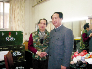 1月21日清晨,石家莊市總工會宣教部部長趙新月起了個大早,穿上了一身嶄新的銀灰色中山裝,搭早車趕往北京。10點半,他準(zhǔn)時出現(xiàn)在八一電影制片廠化裝室,多次為影視劇中毛澤東的扮演者古月化裝的著名化裝師楊碩玲,將為趙新月第二天在北京的一場演出進行設(shè)計造型。