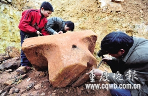 昨日,接報專門趕到現(xiàn)場的綦江縣文管所所長周鈴仔細查驗墩子,沒發(fā)現(xiàn)任何文字銘刻。結(jié)合當?shù)厍闆r,周鈴對墩子的來歷提出六種猜想。