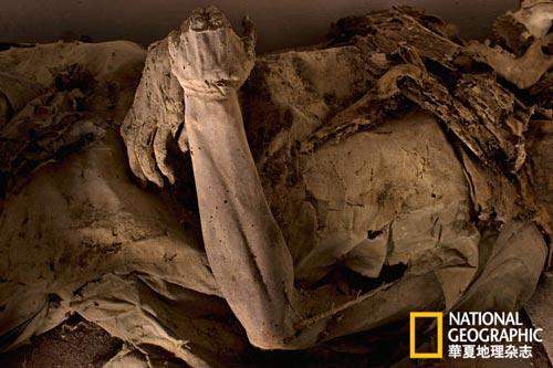 我在死者的隊列前走過,說不清心里究竟是什么滋味。在西方文化里,死人的尸體并不是能經(jīng)常得見的,失去生命的軀殼都用尸布包裹,藏于暗處。這些死者都籠罩著一種神秘氣息,從身上仍可窺見其生前的處世態(tài)度及信仰。我?guī)е环N病態(tài)的興致檢視這些尸體(原來死亡就是這樣的呀),意識到活人與死人之間的最大區(qū)別就是,你可以饒有興味地、近距離地、直勾勾地盯著死人看,活人可受不了被如此打量。然后我又想到,這里真該播放邁克爾·杰克遜的《顫栗》做背景音樂,因?yàn)檫@些尸體看起來實(shí)在太像恐怖片里拙劣地拼接起來的僵尸,偉大的自然之力卻造就了類似低級藝術(shù)品的效果,真是既滑稽又可悲。他們張著下頜,仿佛在無聲地號哭,漚爛的牙齒暴露在外,又像是帶著邪惡的微笑,讓人不寒而栗,空洞洞的眼窩毫無生氣,萎縮的顴骨和僵硬的關(guān)節(jié)上粘連著一片片硬化的皮膚。這些人大多數(shù)個頭比較小,手臂交叉著被鐵絲和釘子垂掛起來以保持直立,腦袋懶洋洋地搭在肩膀上,肢體竭力模仿生前的模樣,卻無可奈何地漸漸腐化崩潰。