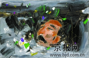 “您年輕時(shí)喜歡魯迅,視他為精神父親。油畫《野草》,魯迅的頭像和野草一起生長(zhǎng)在大地上。讓人觸目驚心!