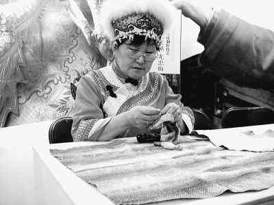 “鞋雖小,要做兩天呢。魚皮從剝下、去鱗、晾干、軋熟、裁剪縫制,工序多,很累人,要花幾天工夫的!闭f話時,她手里的針仍然在來回穿梭。這里的她,是黑龍江同江市津街口鄉(xiāng)漁業(yè)村的漁民尤文鳳,魚皮服制作技藝的國家級代表性傳承人。中國非物質(zhì)文化遺產(chǎn)傳統(tǒng)技藝大展,目前正在北京舉行,大展期間,隨著人流走進展館時,我在她的展位前一再流連。