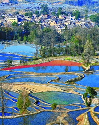 早春二月,云南省紅河哈尼族彝族自治州元陽縣近20萬畝梯田已灌水泡田進(jìn)入備耕期。放眼望去,山嶺溝壑間千層水網(wǎng),萬疊田疇,或波光粼粼,或波平如鏡,景色奇幻。每天有眾多中外游人及攝影愛好者來這里觀光采風(fēng)。 為將著名的紅河哈尼梯田申報為世界文化遺產(chǎn)保護地,云南省紅河哈尼族彝族自治州特別邀請由中國社會科學(xué)院10多名文史專家組成的國情調(diào)查組于2月16日至19日赴元陽縣考察梯田,為申遺出謀劃策。經(jīng)數(shù)日深入調(diào)研,專家們認(rèn)為,紅河哈尼梯田同時具備物質(zhì)與非物質(zhì)世界文化雙遺產(chǎn)特征,應(yīng)注重可持續(xù)發(fā)展,將生態(tài)環(huán)境保護與水資源科學(xué)利用相結(jié)合,并多元化立體推介其梯田文化的深刻內(nèi)涵。