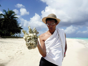 紀(jì)連海的博客圖文并茂地記錄了他這次陽光之旅,從照片上可以看出老紀(jì)心情不錯(cuò)。在一張照片上,紀(jì)連海上身裹著白色浴巾,頭戴異域風(fēng)情的草帽,手舉珊瑚。陽光反射在老紀(jì)1500度的眼鏡上,讓他的眼神看起來十分犀利。記者在紀(jì)連海博客留言板上看到,不少網(wǎng)友感嘆老紀(jì)身材惹火,造型比芙蓉姐姐擺得還好。