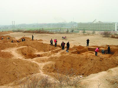 日前,在章丘市繡惠鎮(zhèn)北側(cè)的女郎山南坡周圍,濟(jì)南市考古人員發(fā)現(xiàn)了一個(gè)特大型古墓群。初步估計(jì),附近蘊(yùn)藏的古墓葬約有2000座,是迄今為止在濟(jì)南地區(qū)發(fā)現(xiàn)的最大古墓群。