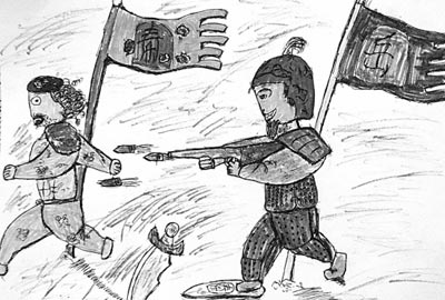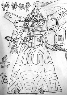 據(jù)《錢江晚報(bào)》報(bào)道,為紀(jì)念岳飛誕辰906周年,岳廟景區(qū)日前特意請來孩子們一起來畫心目中的岳飛。大多數(shù)人畫得中規(guī)中矩,但有一位同學(xué)畫出了“變形金剛版”的岳飛,盔甲被換成了擎天柱的外殼。還有一個(gè)孩子畫的岳飛,腳上穿著標(biāo)有“adidas”的鞋子,一只腳還踩著一塊滑板,手上的瀝泉槍換成了沖鋒槍。