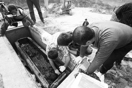 古墓藏身于海滄區(qū)古樓村水庫附近的文圃山,是一處正在建造的陵園。據(jù)現(xiàn)場施工經(jīng)理黃和平介紹,前天下午4時40分許,一輛挖掘機挖土方時,發(fā)現(xiàn)了這座古墓。古墓埋藏在山腰底下3米處。