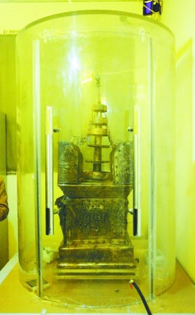 去年11月出函之后,阿育王塔一直被存放在特制的有機玻璃容器中,里面充入氮氣保持恒溫恒濕。3個月過去了,“塔王”保存狀況良好,但有專家指出,鑒于阿育王塔的材料和結(jié)構(gòu)相對特殊,最好的辦法還是分類保存。