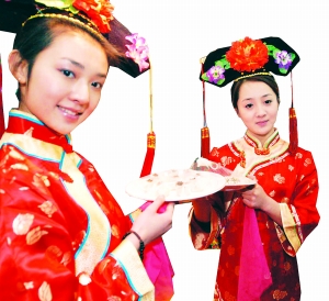 無論民間、官場在宴會(huì)的時(shí)候一定是男女分席,沒有說夫婦兩人擠在一個(gè)桌子上的。還有,八仙桌最多坐六個(gè)人。清裝戲里不該有大圓桌,大圓桌是民國以后才有,而且只能坐九人,不能坐十人,正對面留一個(gè)菜口。