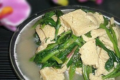 常見的一種吃法是菠菜炒豆腐。但有人卻認為菠菜與豆腐不能一起吃,據(jù)說是由于菠菜的草酸含量很高,能與豆腐中的鈣結合形成不溶性的草酸鈣結晶,不能被人體吸收,從而降低了鈣的吸收與利用。也有人對此不以為然,認為損失一點鈣沒有什么了不起的。
