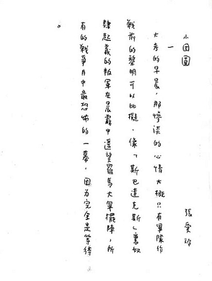 這兩個月我一直在忙著寫長篇小說《小團(tuán)圓》,從前的稿子完全不能用。現(xiàn)在寫了一半。這篇沒有礙語。…… 我在《小團(tuán)圓》里講到自己也很不客氣,這種地方總是自己來揭發(fā)的好。當(dāng)然也并不是否定自己。