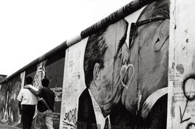 1961 年柏林墻建起后,上面逐漸出現(xiàn)了大量涂鴉作品。由俄羅斯藝術(shù)家德米特里·弗魯貝爾(DmitriVrubel)創(chuàng)作于20 年前的《兄弟之吻》,可算是其中最著名的!缎值苤恰访枥L的是前民主德國領(lǐng)導(dǎo)人埃里希·昂納克(Erich Honecker)和前蘇聯(lián)領(lǐng)導(dǎo)人勃列日涅夫(Leonid Brezhnev)嘴唇對嘴唇的親吻,帶有很強(qiáng)的諷刺意味。多年來,這幅涂鴉已經(jīng)成為柏林著名的旅游景點(diǎn)。弗魯貝爾在得知成名作將消失后,感到很遺憾,不過他從畫作的歸屬方East Side 畫廊獲得了3000 歐元的補(bǔ)償,而且還被邀請將來重新繪制一幅《兄弟之吻》,“當(dāng)然不再是從政治的角度,而是與愛有關(guān)”。