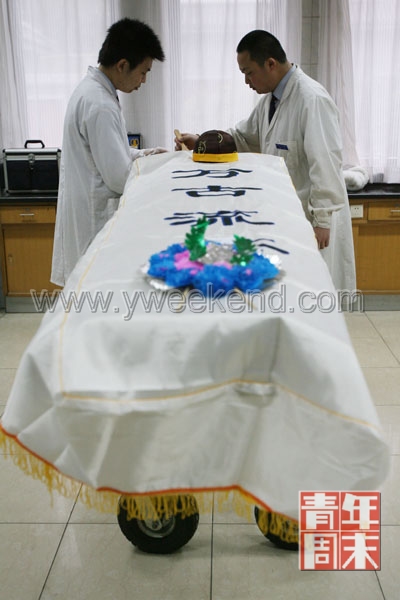 這是年輕的整容師一天中最普通的一單工作,只用時10分鐘。一天最少完成20具。對于張洋來說,早已習慣了這份工作。“或者說,我必須學會麻木!睆堁蟾嬖V記者。