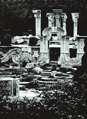 皇家宮殿被搶劫破壞的悲慘場(chǎng)面令埃里松感到難受。他從宮殿走到庭院,觀賞這座園林,覺得舒服些。不過(guò)他又看見到處都是跑動(dòng)著的搶劫人群,他們“朝宮殿、寶塔、文源閣跑去”。