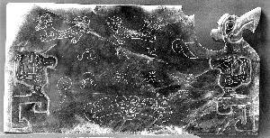 也有學(xué)者認(rèn)為三星堆的“玉石文字”受甲骨文的影響,陳保亞認(rèn)為這種說(shuō)法會(huì)遇到困難,因?yàn)槿嵌盐幕摹坝袷淖帧边處于圖畫(huà)和文字并存階段,在形態(tài)上比甲骨文要早,或者說(shuō)要原始。