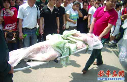 一男子全身裸露,被裝在一個(gè)透明塑料袋里,周圍還散發(fā)著一股臭味!5月24日中午12時(shí)30分許,在臺東三路步行街逛街的市民發(fā)現(xiàn)街上躺著一具全裸“男尸”,趕緊報(bào)了警。110民警趕到現(xiàn)場發(fā)現(xiàn)這名男子還有呼吸,便趕緊撥打120將其送往醫(yī)院?闪钊讼氩坏降氖,這具“男尸”在被送到醫(yī)院后,竟然自己撕掉身上的塑料袋后穿衣跑了。事后大家才知道,這是一名男子在表演行為藝術(shù)。