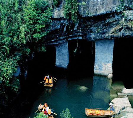 特別值得一提的是洞口處的通海橋,橋下一潭清澈見底的泉水嘩嘩作響,很可能存在活的水源。溯流而下,到了洞內(nèi)最低處,石壁清晰可見精雕細(xì)刻的花紋。雖然這里已經(jīng)位于新安江水面以下2米,上下落差有25米,但是洞內(nèi)通風(fēng)狀況良好,并無(wú)任何不適感覺(jué)。另外,洞窟的怪異構(gòu)造使得聲波被石壁吸收,無(wú)論多么大聲喧嘩,在洞內(nèi)都聽不到一絲回音。