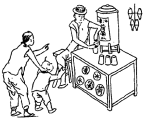 汽水!斑@可是一個新鮮的玩意兒,喝到肚子里打嗝,熱氣從口腔和鼻孔噴出來,身體就會涼快下來,所以,汽水很受歡迎!
