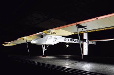6 月26 日,伯特蘭·皮卡特在瑞士的蘇黎世機(jī)場(chǎng),向人們展示了這架依靠太陽(yáng)能作為全部動(dòng)力的飛機(jī)。這架飛機(jī)看上過去纖巧、修長(zhǎng),機(jī)翼和尾翼上都蒙覆了一層薄膜一般的太陽(yáng)能電池板。這些電池板將把陽(yáng)光轉(zhuǎn)化為電能,不僅能讓飛機(jī)在白天持續(xù)飛行,在夜間,被電池板儲(chǔ)存下來(lái)的能量也能支持飛機(jī)繼續(xù)它的行程。