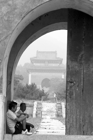 相比定陵的任你看個(gè)夠,永陵卻是神秘又神秘。在得到李德仲的允許后,司機(jī)驅(qū)車帶記者來到永陵。斑駁的路面,全是大城磚鋪砌,朱紅色的墻顏色已經(jīng)陳舊,木頭大門已見破損。攝影記者剛要踏進(jìn)大門,一位師傅就板著臉喝止。他倚坐在門檻上,一臉威嚴(yán):“不能進(jìn),里面有探頭!”記者便乘機(jī)和他聊了起來,他姓齊,是新一代的守陵人。從上世紀(jì)80年代開始,他就擔(dān)任守護(hù)永陵一職,每天的生活非常簡(jiǎn)單,睜開眼睛就是守在永陵的門口,偶爾聽聽收音機(jī)。齊師傅通常都是坐在永陵入口的青石門檻上,手里一個(gè)對(duì)講機(jī)。偶爾對(duì)講機(jī)會(huì)響起聲音,那是十三陵管理委員會(huì)通知他,有專家要來參觀了,做好接待準(zhǔn)備……不過,相比定陵和長(zhǎng)陵,來這里參觀的人實(shí)在少之又少;大多數(shù)時(shí)間,老齊都是兩眼看著紅色斑駁的大門,還有門檻、破碎不一的城磚鋪砌的路面。