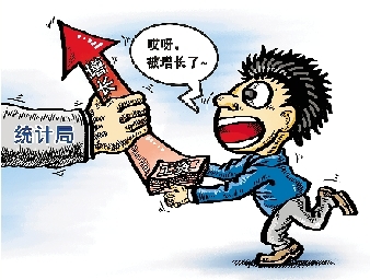 詞匯釋義:近來的新詞中,“被”字輩搶盡風(fēng)頭,前有“被自殺”,后有“被就業(yè)”,如今的掌門人是“被增長”。說的是國家統(tǒng)計局近日公布的一份統(tǒng)計顯示,上半年全國城鎮(zhèn)居民人均可支配收入實際增長11.2%,農(nóng)村居民增長8.1%,遠(yuǎn)超上半年7.1%的經(jīng)濟增速。從前大家都喊工資收入趕不上GDP增速,如今在數(shù)據(jù)上倒是真實現(xiàn)了,而且還是在全球金融危機的背景下。善于質(zhì)疑的網(wǎng)友們,更懂得拿數(shù)據(jù)說話,于是紛紛在網(wǎng)絡(luò)上曬工資。結(jié)果顯示,我們的工資根本沒怎么漲,我們的收入原來是“被增長”了,亦即口袋沒見鼓起來,卻硬要被人說漲工資了。此后,許多媒體紛紛表示,相信國家統(tǒng)計局,但不能保證下面報上來的數(shù)據(jù)是否造假。本刊之前還就“被就業(yè)”談過數(shù)據(jù)造假的誘因以及惡劣后果,所以不再詳細(xì)討論,但要強調(diào)一句話,造假數(shù)據(jù)猛于三鹿奶粉。