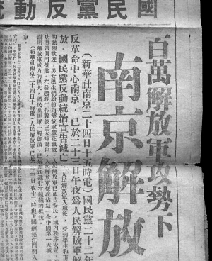 在人民解放軍的強(qiáng)大攻勢下,國民黨南京政府土崩瓦解,黨政官員倉皇南逃,駐防南京及蘇南各地的國民黨軍紛紛棄守而逃。各城市地下黨組織根據(jù)事先的布置,組織共產(chǎn)黨員和積極分子維護(hù)城市秩序,熱烈歡迎解放軍的到來。解放軍第8兵團(tuán)第35軍于23日午夜進(jìn)占“總統(tǒng)府”。5月1日,中共中央電賀南京解放,指出:“人民解放軍第二、第三兩大野戰(zhàn)軍執(zhí)行人民解放軍總部司令,奮勇前進(jìn),橫渡長江,敵軍望風(fēng)披靡,南京迅獲解放,國民黨反動派統(tǒng)治從此宣告滅亡,江南千百萬人民迅即重見天日,全國歡騰,環(huán)球鼓舞!