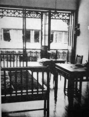 1920年5月5日,毛澤東以“驅(qū)張”代表團(tuán)成員的身份,從北京來(lái)到上海,住在靜安區(qū)原哈同花園附近的哈同路民厚里29號(hào)(今安義路63號(hào))。這是一幢磚木結(jié)構(gòu),坐南朝北,沿街而建的舊式二層樓里弄房子。樓下是會(huì)客室兼飯廳。樓上的臥室有一排臨街的長(zhǎng)窗。室內(nèi)放著兩張床,一只茶幾和一張桌子。桌上擺著粗瓷茶壺,茶杯及筆硯文具。毛澤東就住在這里。同住的還有李思安、李鳳池、陳書農(nóng)等三個(gè)湖南學(xué)生。他們每人每月僅有3元零用錢。過(guò)著十分簡(jiǎn)樸的生活。四個(gè)人輪流做飯,常吃蠶豆煮飯,生活比較清苦。毛澤東在這里每天都要閱讀各地的報(bào)刊和書籍。他還邀請(qǐng)十多位旅滬青年,成立了“自修學(xué)社”,共同學(xué)習(xí)各種理論著作和外語(yǔ)。1920年6月7日,毛澤東寫信給北京的黎錦熙老師,信中談及南下見(jiàn)聞和自己追求革命的決心,說(shuō)他準(zhǔn)備瀏覽在滬“新出的報(bào)、雜志、叢書及各種譯本,尋獲東方及世界學(xué)術(shù)思想之大綱要目”。