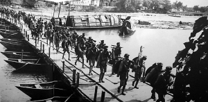 我是從茶峒入秀山的,公路橋被燒掉了,只得走浮橋。浮橋又晃又滑。過河時,我的鋪蓋由馬馭著,誰知橋板太滑,馬失蹄掉江里,鋪蓋也給沖走了。川東南的11月,天天下雨,冷得要命。我從常德出發(fā)只領了一件國軍黃呢大衣,根本不頂用。到了酉陽,還是閻紅彥將他自己的一件國軍棉衣讓給我,我才沒凍病。