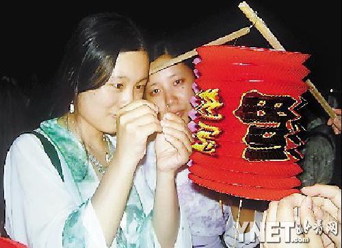 手提燈籠,身著襦裙、青衣,發(fā)髻上的簪子一步三搖,幾十名“古代”女子一出現(xiàn)在后海,就引得其他游人駐足。當(dāng)她們提著燈籠站成一排,仰望星空中的織女星開(kāi)始“拜織女”時(shí),旁邊的相機(jī)更是閃個(gè)不停!罢嫫!”一位游人贊嘆。