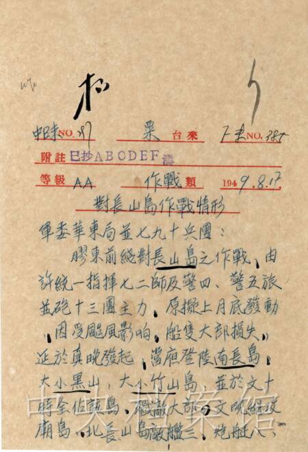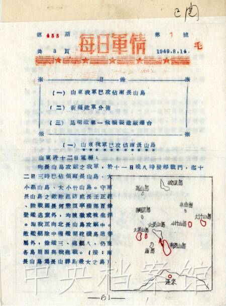 長(zhǎng)山列島位于山東半島與遼東半島之間,扼渤海灣門戶,由南、北長(zhǎng)山島等17個(gè)島嶼組成。山東半島解放后,退據(jù)長(zhǎng)山列島的國(guó)民黨軍陸戰(zhàn)第2團(tuán)等部,破壞漁業(yè)生產(chǎn)和海上交通,妄圖封鎖渤海灣。1949年8月,中國(guó)人民解放軍山東軍區(qū)指揮進(jìn)行解放長(zhǎng)山列島的作戰(zhàn)。11日晚,第24軍第72師和警備第4、第5旅分別從蓬萊縣劉家旺、欒家口、解宋營(yíng)起渡。12日凌晨,警備第4、第5旅攻占長(zhǎng)山列島兩翼大小黑山島、大小竹山島,牽制停泊在南北長(zhǎng)山島的國(guó)民黨軍艦艇。第72師在友鄰配合下,接近南北長(zhǎng)山島,并在炮火掩護(hù)下迅速登島,與國(guó)民黨守軍展開激戰(zhàn),上午攻占南長(zhǎng)山島,下午占領(lǐng)北長(zhǎng)山島。爾后以警備第5旅為主,向砣磯島、大小欽島、南北皇城島發(fā)展進(jìn)攻。至20日,國(guó)民黨守軍殘部棄島逃遁,人民解放軍收復(fù)了國(guó)民黨軍隊(duì)占領(lǐng)的大小島嶼,殲國(guó)民黨軍15OO余人,山東省全境解放。