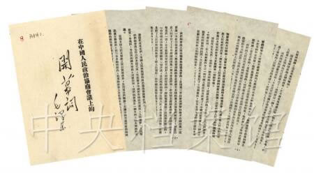 1949年 9月 21日至 3O日,中國(guó)人民政治協(xié)商會(huì)議第一屆全體會(huì)議在北平中南海懷仁堂召開(kāi),出席會(huì)議的各方面代表 662人。毛澤東主持會(huì)議并致開(kāi)幕詞,他說(shuō): “占人類總數(shù)四分之一的中國(guó)人從此站立起來(lái)了。 ”會(huì)議通過(guò)了《中國(guó)人民政治協(xié)商會(huì)議共同綱領(lǐng)》,指出中華人民共和國(guó)的性質(zhì)是以工人階級(jí)為領(lǐng)導(dǎo)的、工農(nóng)聯(lián)盟為基礎(chǔ)的、團(tuán)結(jié)各民主階級(jí)和少數(shù)民族的人民民主專政國(guó)家,并為新中國(guó)的政權(quán)機(jī)關(guān)、軍事制度、經(jīng)濟(jì)政策、文教政策、民族政策和外交政策制定了總原則。會(huì)議還通過(guò)了《中國(guó)人民政治協(xié)商會(huì)議組織法》、《中華人民共和國(guó)中央人民政府組織法》,并作出決議: (1)中華人民共和國(guó)定都北平,即日起改名為北京; (2)中華人民共和國(guó)紀(jì)年采用公元; (3)中華人民共和國(guó)國(guó)歌未正式制定前,以《義勇軍進(jìn)行曲》為國(guó)歌;(4)國(guó)旗定為五星紅旗。大會(huì)選舉出以毛澤東為主席,由 180人組成的第一屆中國(guó)人民政治協(xié)商會(huì)議全國(guó)委員會(huì);選舉了由 63人組成的中央人民政府委員會(huì),毛澤東為中央人民政府主席,朱德、劉少奇、宋慶齡、李濟(jì)深、張瀾、高崗為副主席,周恩來(lái)、陳毅、董必武等56人為政府委員會(huì)委員。