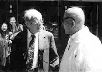 兩位老將軍精神矍鑠,思維敏銳,談笑風(fēng)生,暢敘久別重逢之情。張學(xué)良幽默地說(shuō):“我可迷信了,信上帝。”呂正操隨口接上:“我也迷信,信人民!睆垖W(xué)良笑著說(shuō):“你叫地老鼠!边@指的是當(dāng)年呂正操在冀中領(lǐng)導(dǎo)軍民運(yùn)用“地道戰(zhàn)”等形式,抗擊日寇侵略,開(kāi)展游擊戰(zhàn)的事。呂正操說(shuō):“地老鼠也是人民創(chuàng)造的嘛,我能干什么,還不都是人民的功勞,蔣介石、宋美齡都信上帝,800萬(wàn)軍隊(duì)被我們打垮了,最后跑到臺(tái)灣!睆垖W(xué)良隨即插話(huà):“得民者昌!”呂正操緊接著說(shuō):“那還不都是靠的人民群眾!”