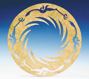 然而,從造型上看,這些青銅面具除了方型臉與人臉有相似之處以外,在其他方面幾乎看不見人臉的成分,獸類的標志卻十分顯著。如長而尖的耳朵似大象耳朵;鼻頭或滾圓或尖聳,鼻翼成漩渦卷起似牛鼻,口縫很深,吐舌似蟾蜍,下頜向前伸長等。因此,所謂“蠶叢縱目”,也許是記錄古蜀人從遠古時代的自然鳥獸崇拜向人類社會的神靈化王者崇拜過渡的描繪;也許是古蜀人對先王蠶叢有遠見的眼光在神像上的藝術(shù)化表現(xiàn),即蠶叢具有可以看見過去和未來的“千里眼”。